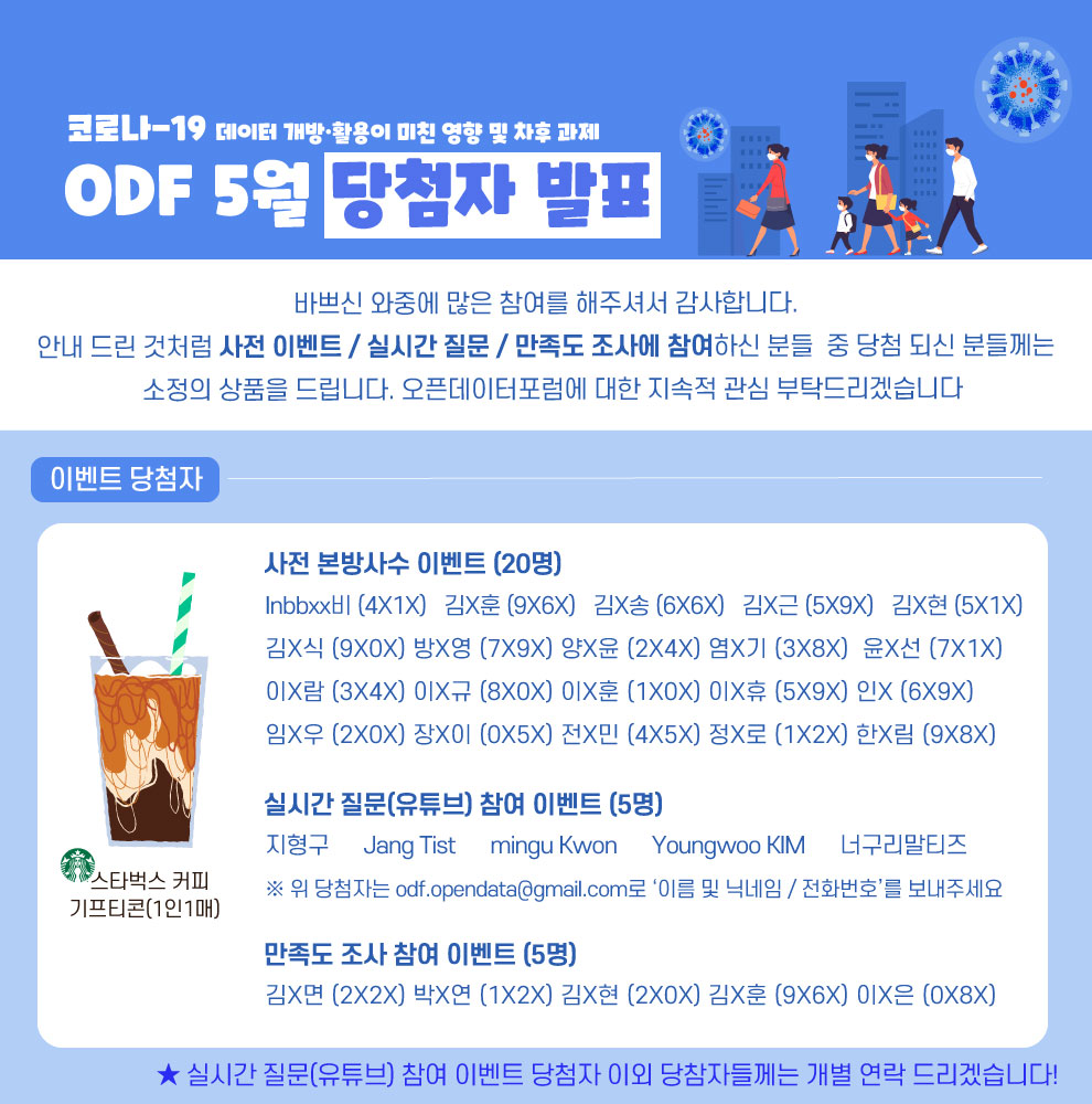 ※ 실시간 질문(유튜브) 참여 이벤트에 당첨되신 분들은 odf.opendata@gamil.com으로 '이름 및 닉네임 / 전화번호'를 꼭! 보내주세요.