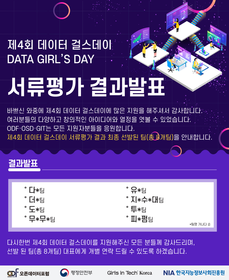 [제4회 데이터 걸스데이] 예선 서류평가 결과